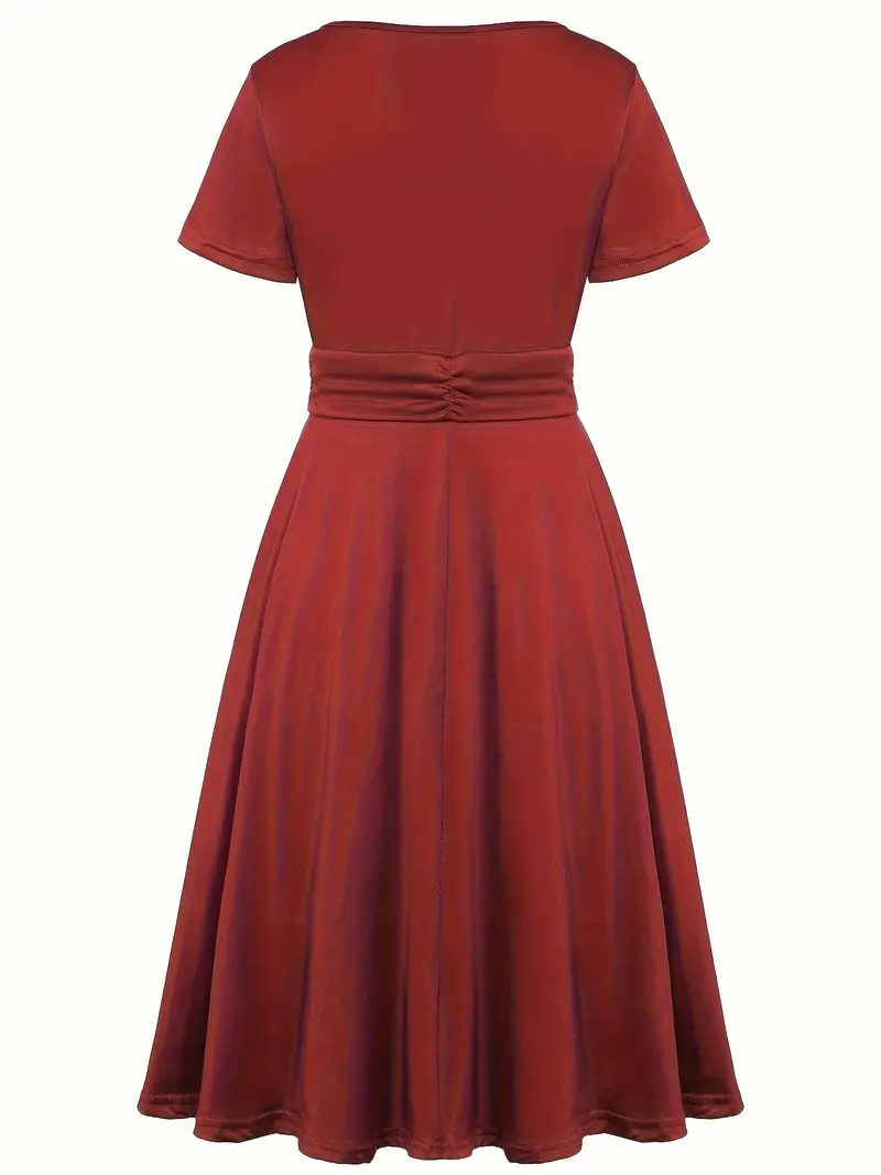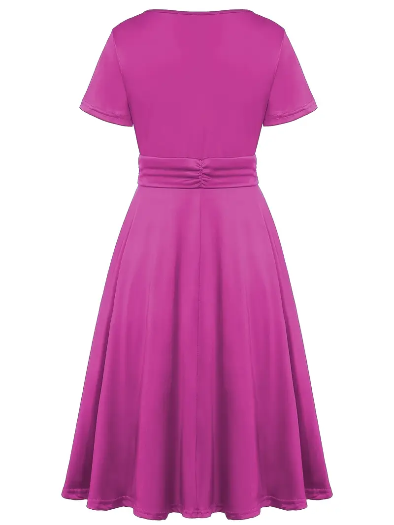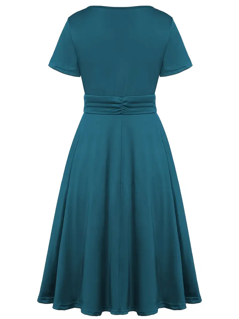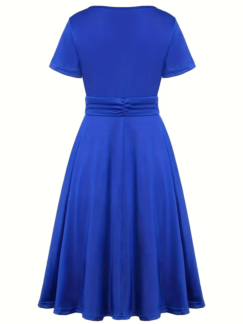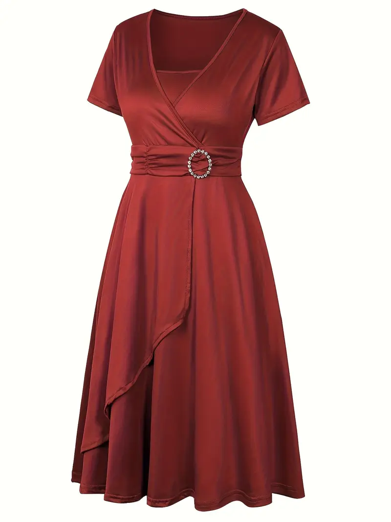 Krótkie rękawy, Dekolt w kształcie litery W, Asymetryczny dół, Jednolity kolor, Mieszanka poliestru, Można prać w pralce, Elegancka sukienka midi z talią na krzyż