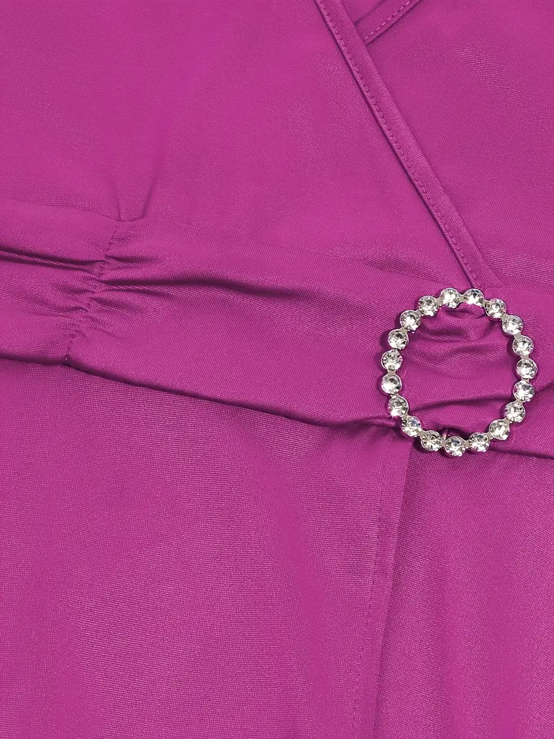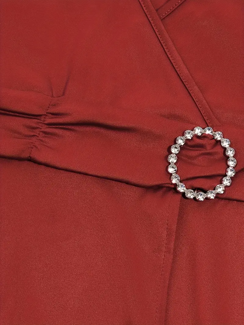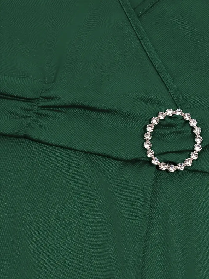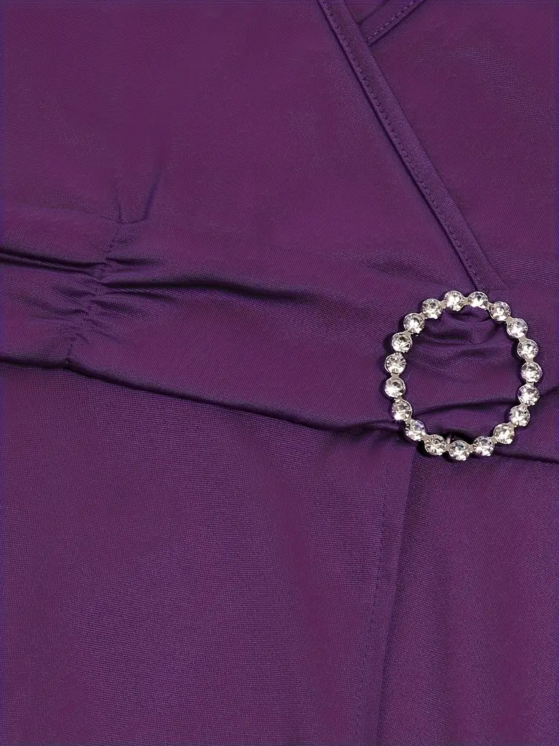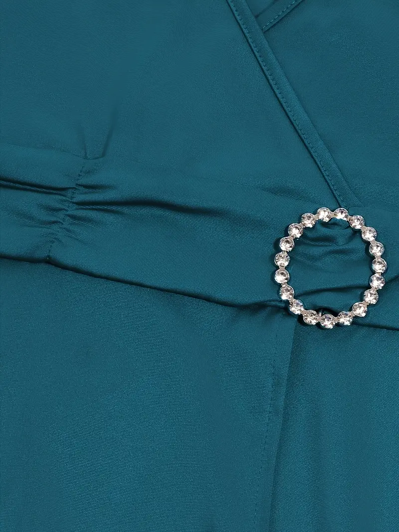 Krótkie rękawy, Dekolt w kształcie litery W, Asymetryczny dół, Jednolity kolor, Mieszanka poliestru, Można prać w pralce, Elegancka sukienka midi z talią na krzyż
