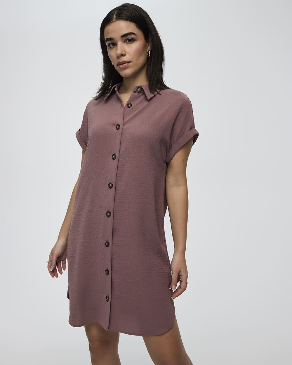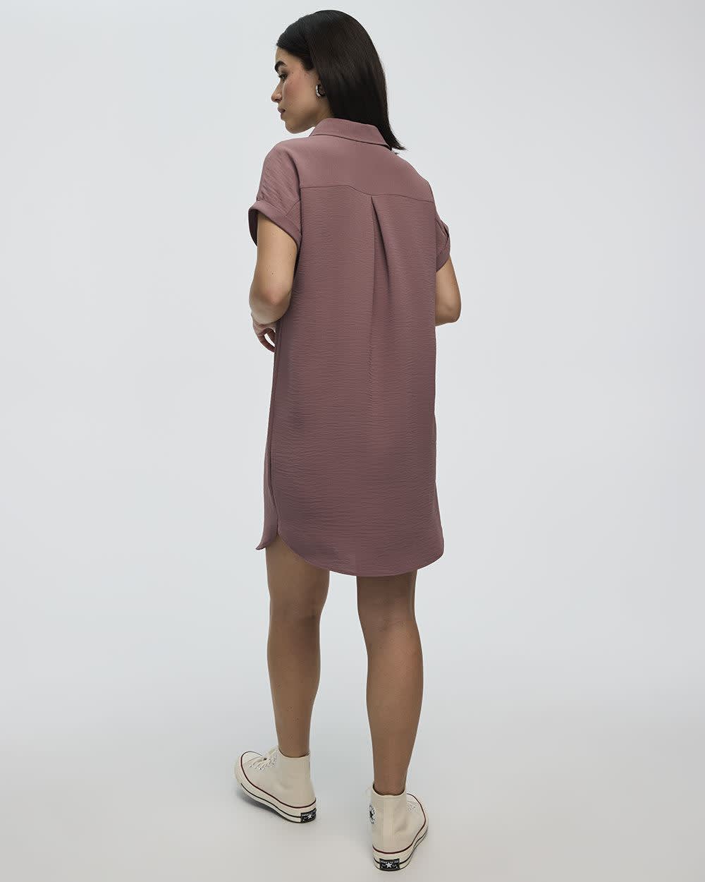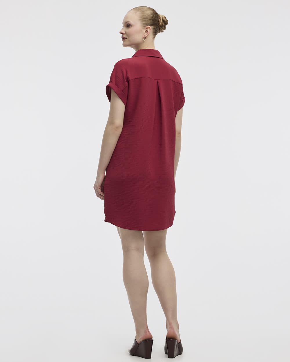 Rodzaj rękawa: Krótkie rękawy z podwiniętymi mankietami, dodające swobodnej i swobodnej atmosfery, przełamujące stereotyp tradycyjnych sukienek koszulowych.