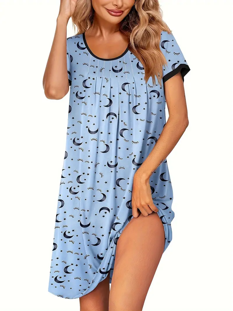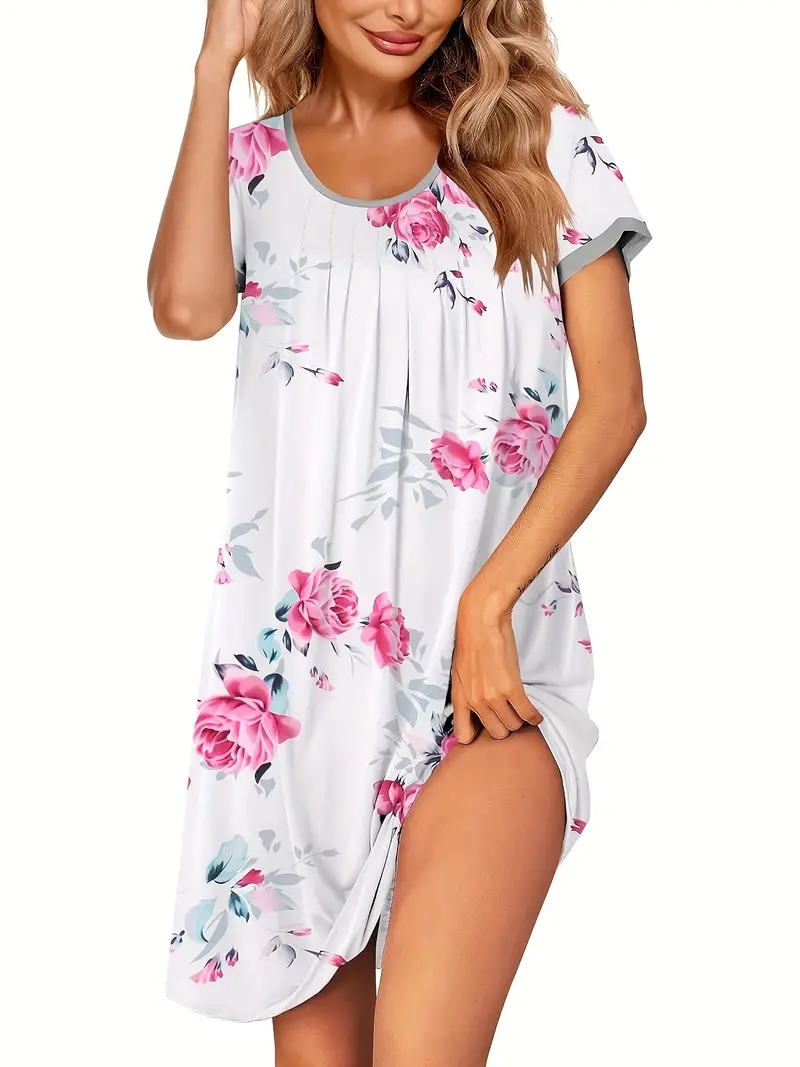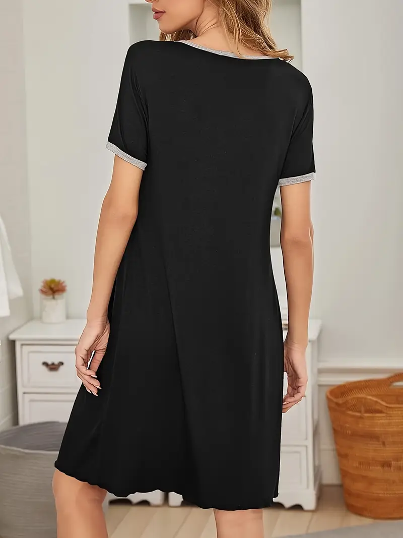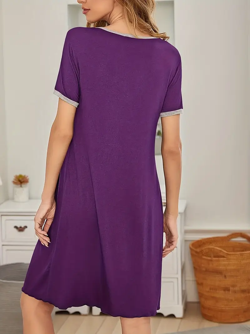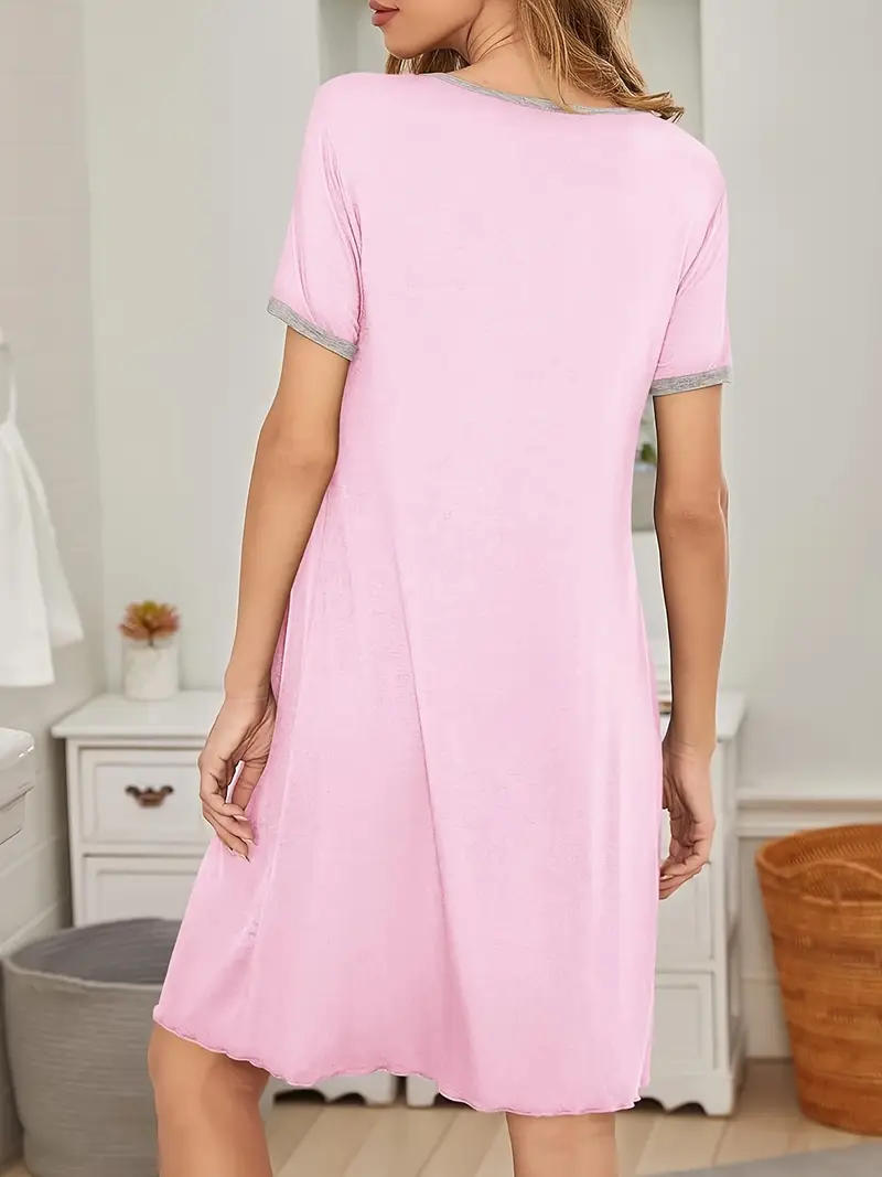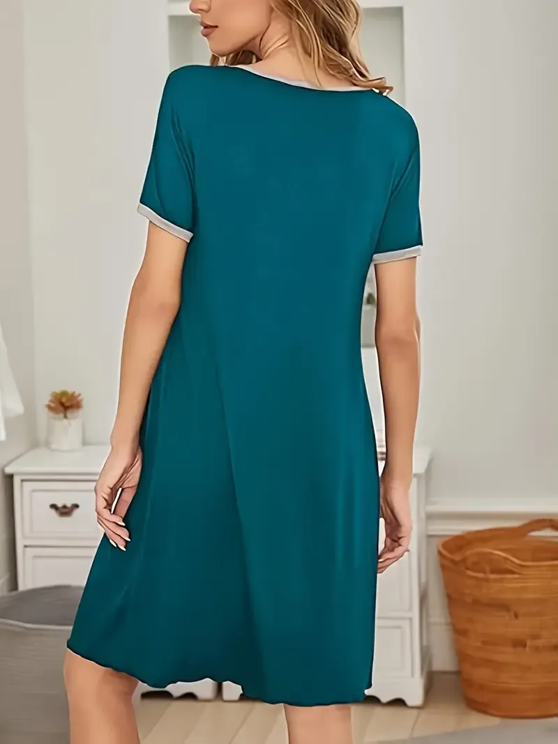 Damska Koszulka Nocna – Jednokolorowa, Krótki Rękaw, Oddychająca (Wiosna/Lato/Jesień)