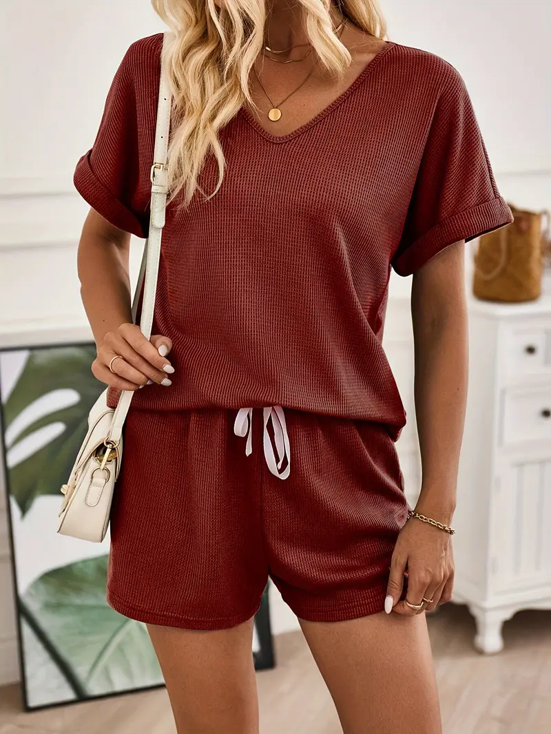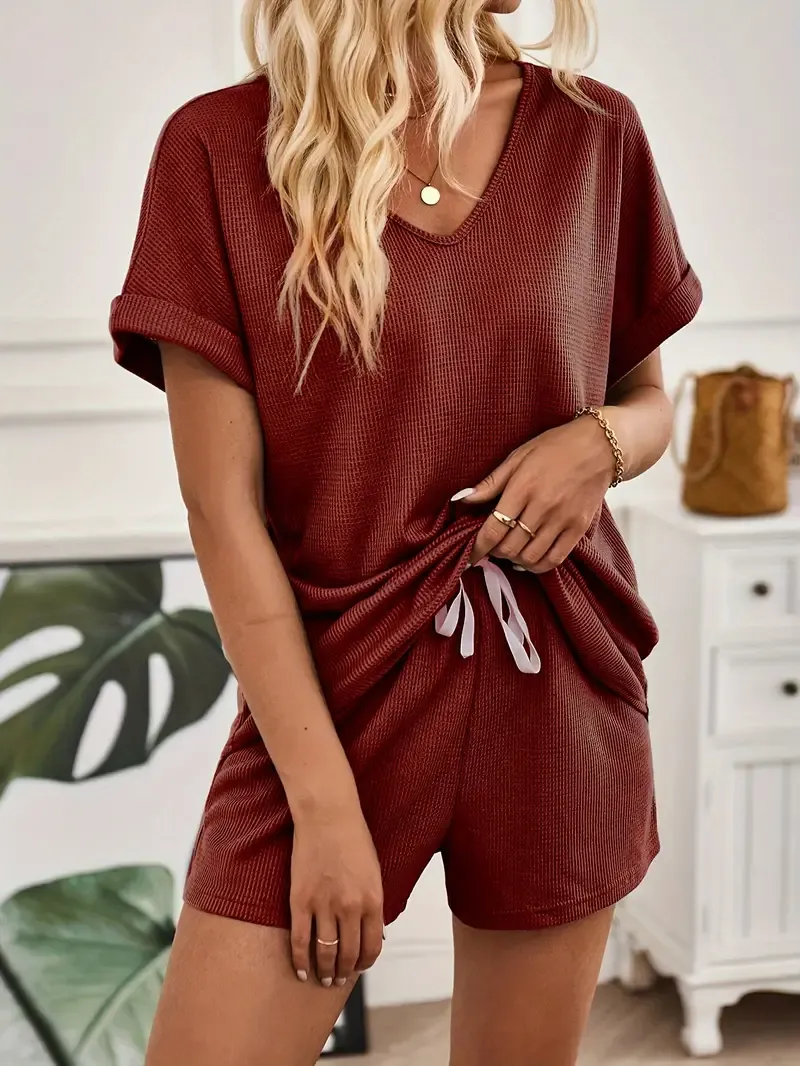 HIT! Letni Zestaw Damski: Top V & Szorty na Sznurku | JEDNOLITY KOLOR + DARMOWA WYSYŁKA