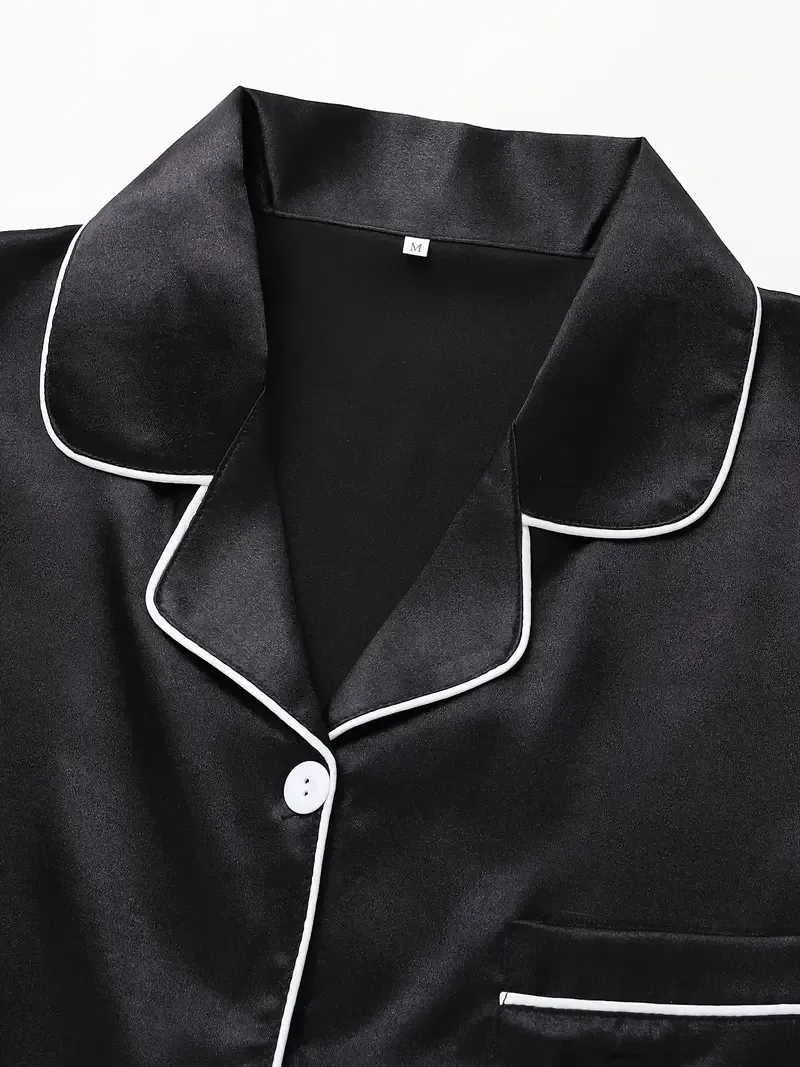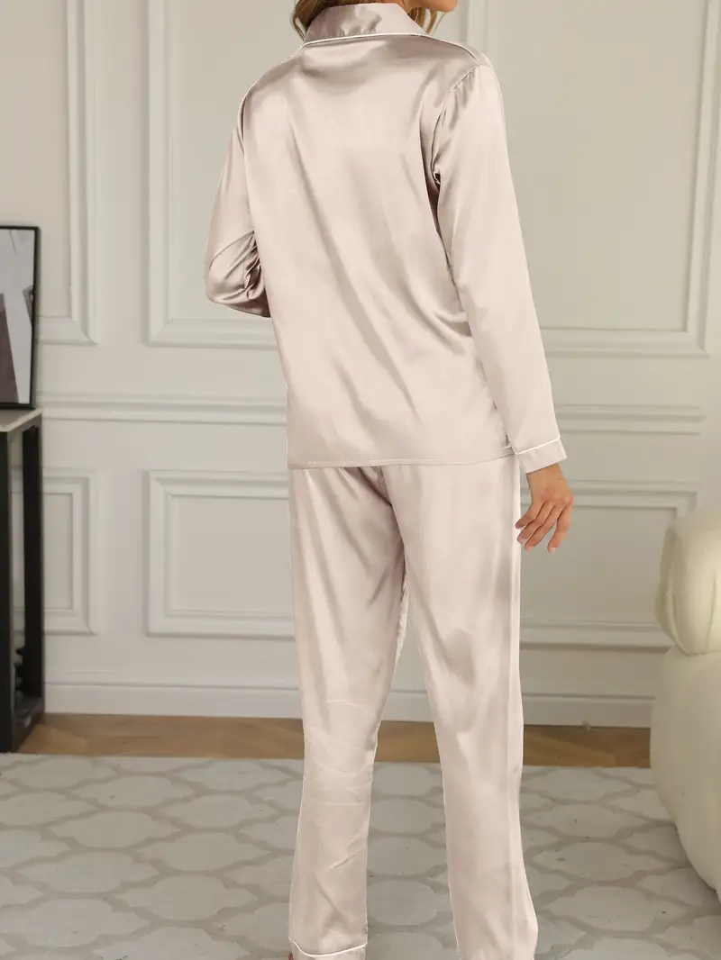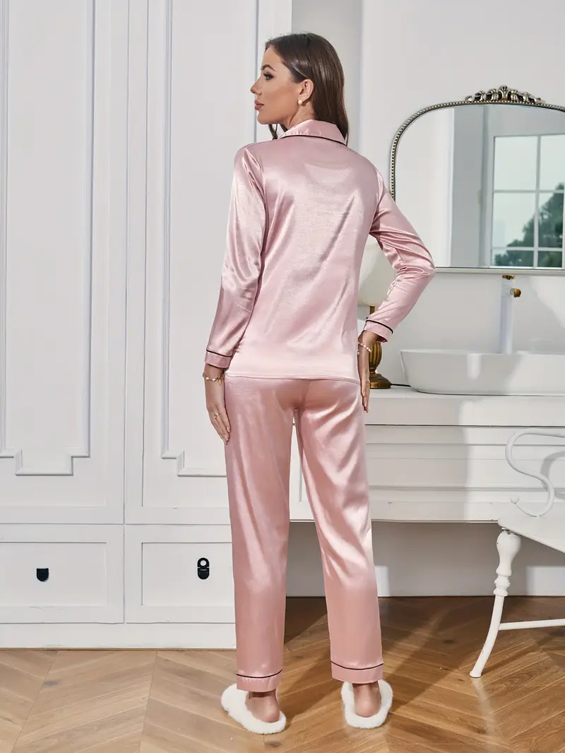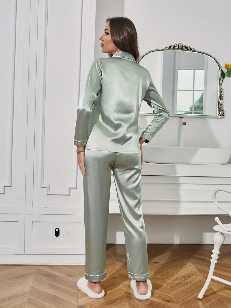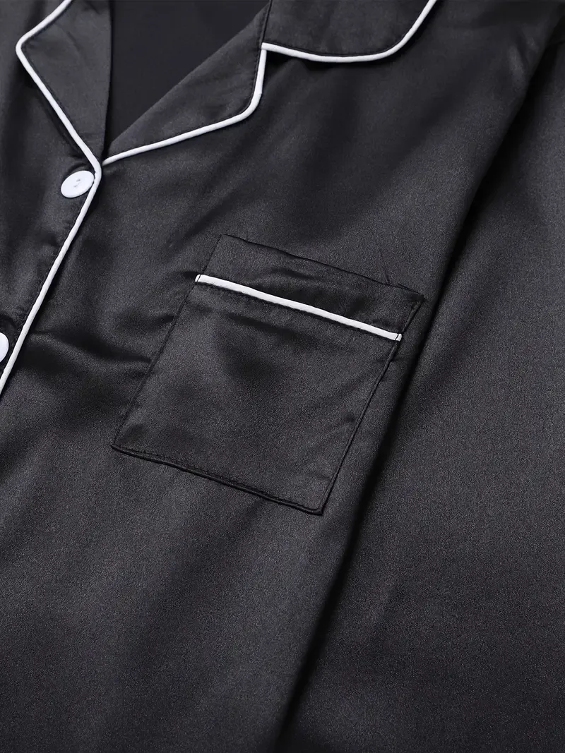 Damski Komfortowy Komplet Pizamy – Długie Rękawy i Klapy na Guziki (Bielizna Nocna & Domowa