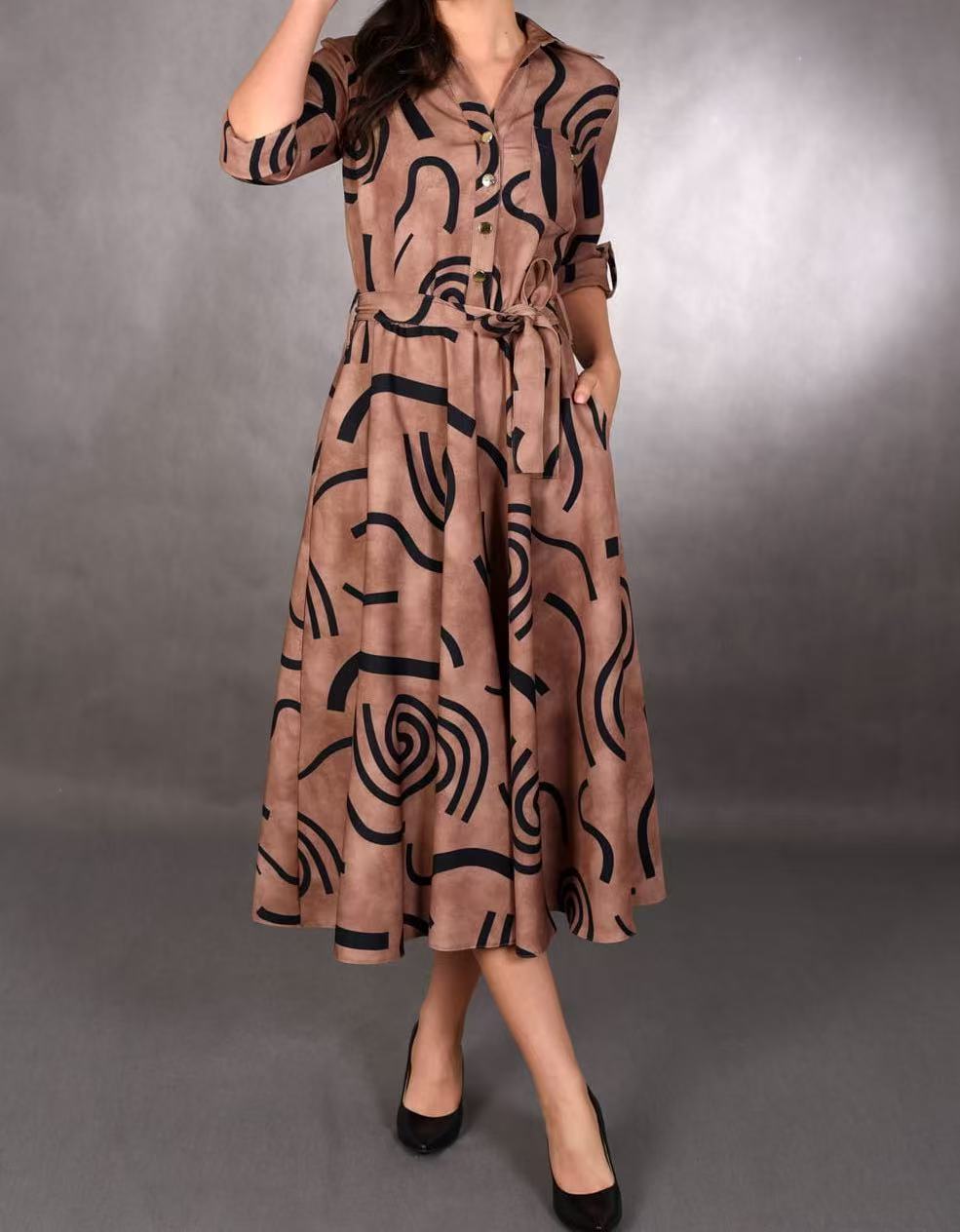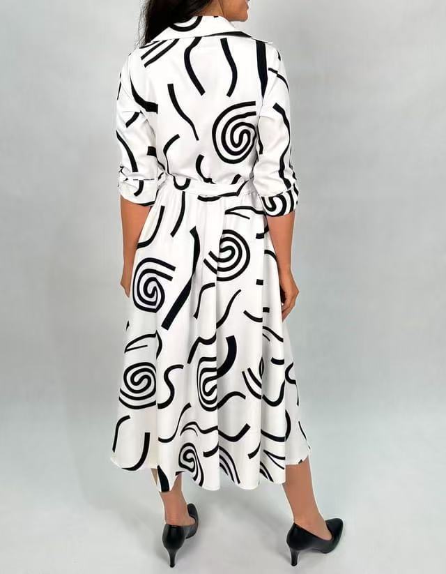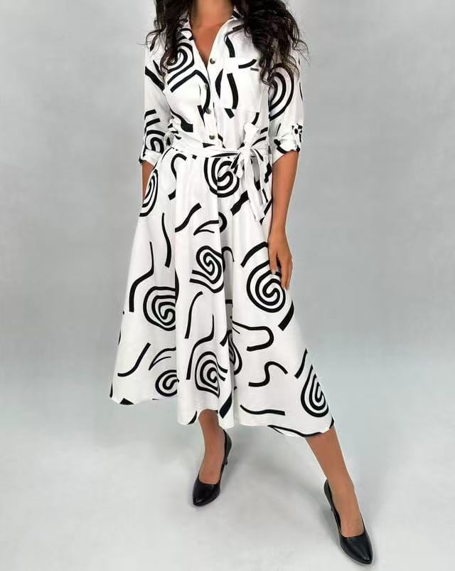 Rodzaj rękawa: Rękawy o średniej długości z podwiniętymi mankietami dodają swobodnego i swobodnego charakteru, przełamując stereotyp tradycyjnych sukienek koszulowych i sprawiając, że stają się one bardziej modne.