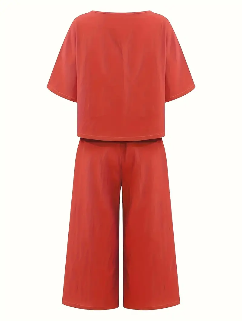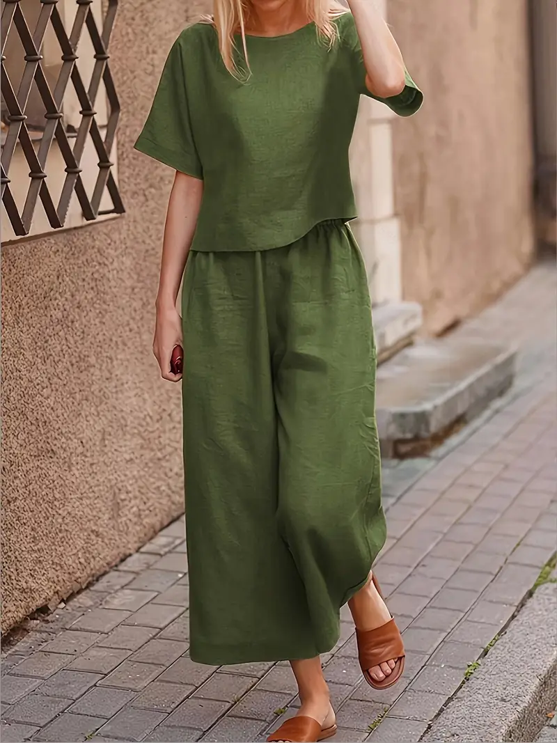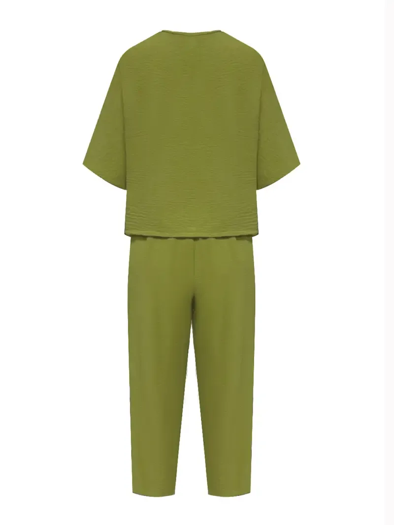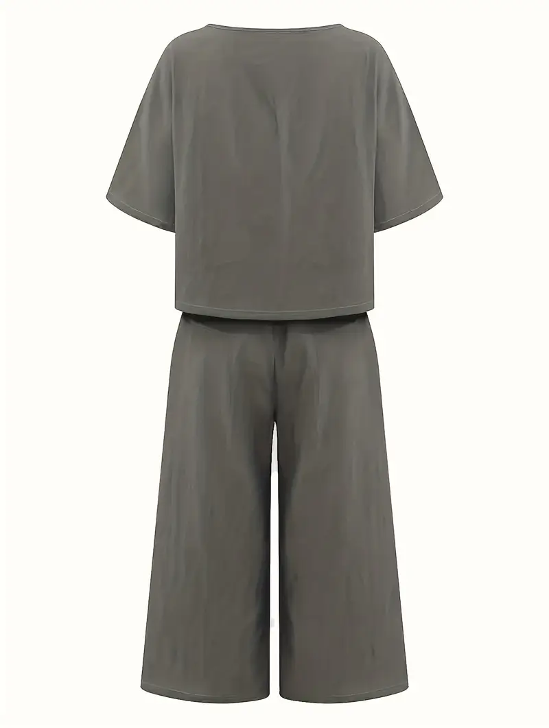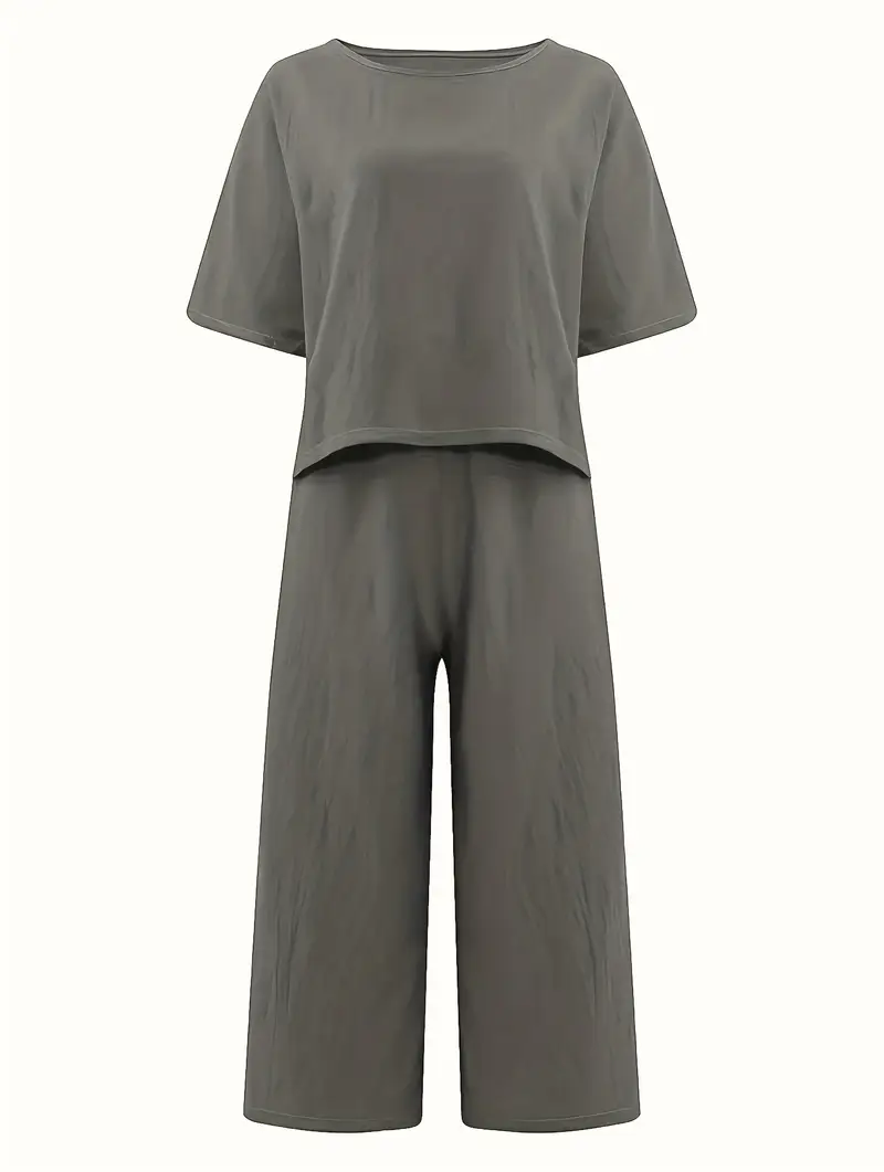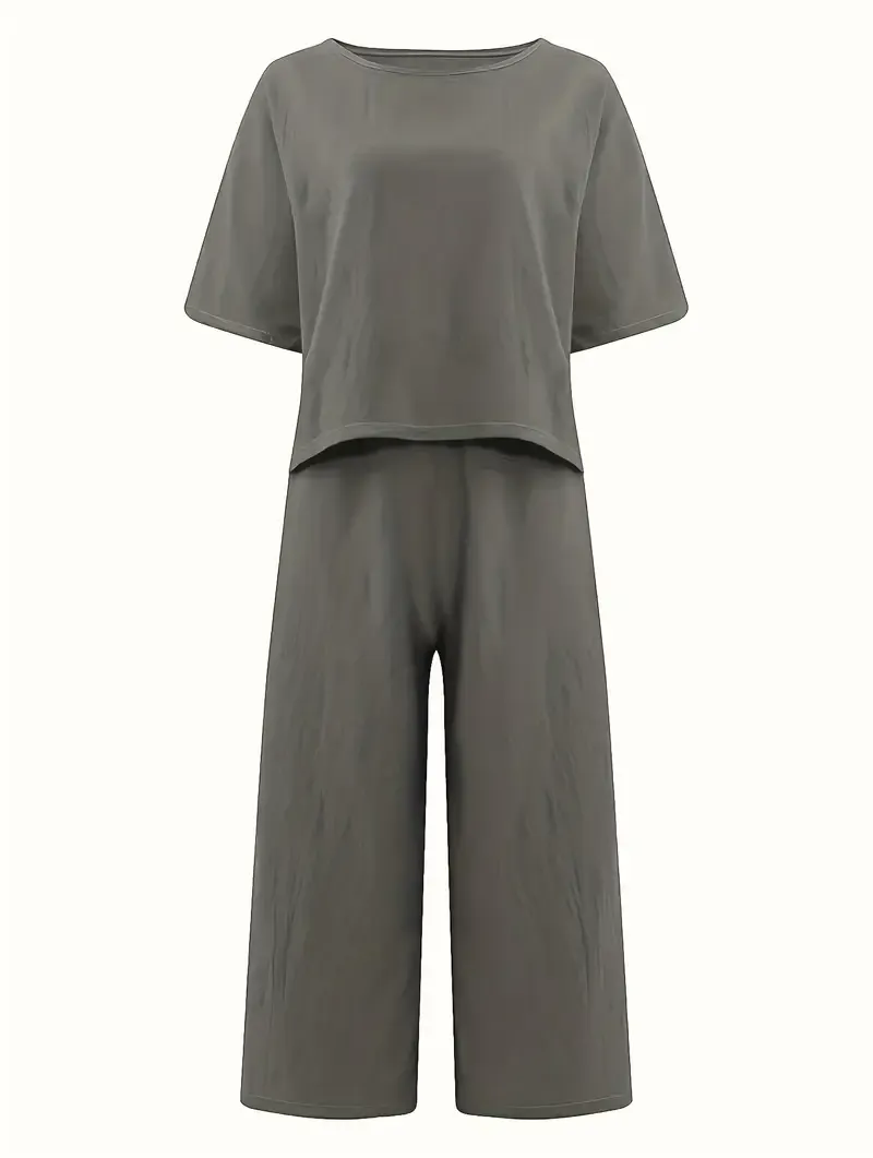 Damski Zestaw 2w1: T-Shirt z Okrągłym Dekoltem + Szerokie Spodnie | DARMOWA WYSYŁKA