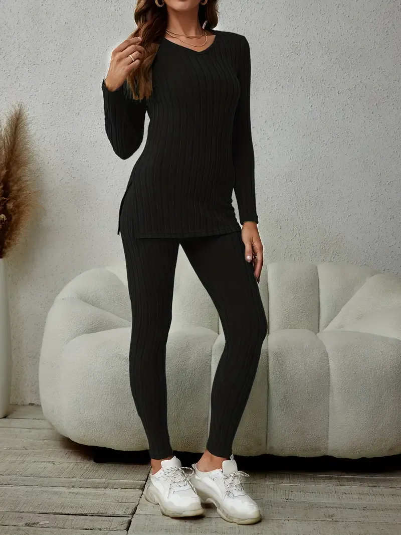 ELEGANCKI KOMPLET: Długi Rękaw z Rozcięciem + Luźne Spodnie | -70% + DARMOWA WYSYŁKA!